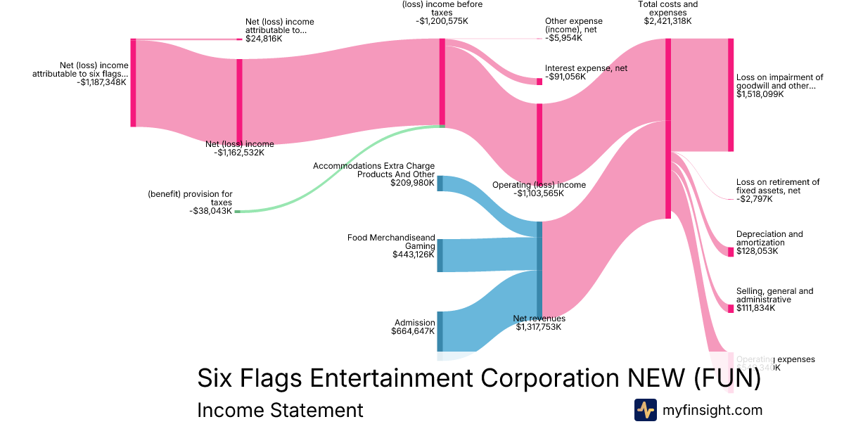 For the quarter ending 2025-09-28, FUN made $1,317,753K in revenue. -$1,187,348K in net income. Net profit margin of -90.10%.