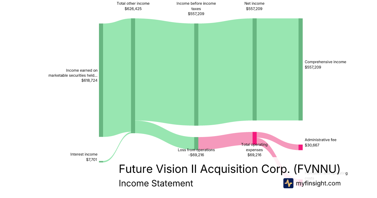 For the quarter ending 2025-09-30, FVNNU made $695,641 in revenue. $557,209 in net income. Net profit margin of 80.10%.