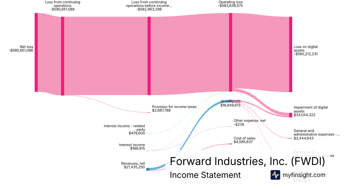 For the quarter ending 2025-12-31, FWDI made $21,435,250 in revenue. -$585,651,086 in net income. Net profit margin of -2732.19%.