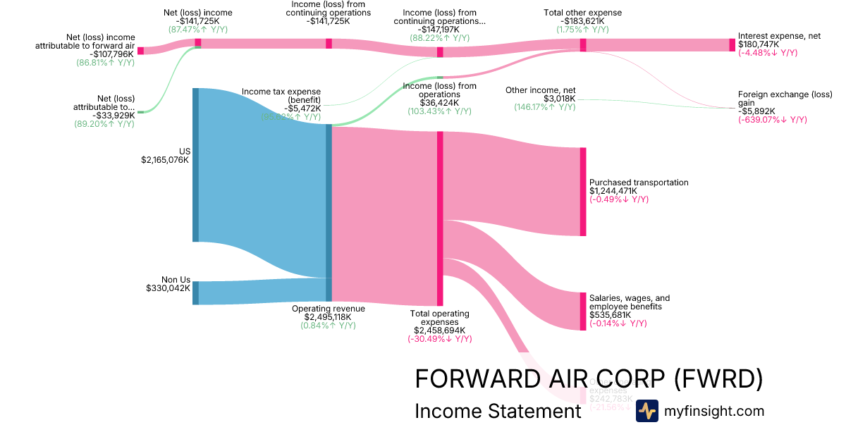 For the year ending 2025-12-31, FWRD made $2,495,118K in revenue. -$107,796K in net income. Net profit margin of -4.32%.