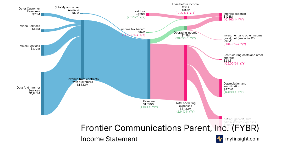 For the quarter ending 2025-09-30, FYBR made $1,550M in revenue. -$76M in net income. Net profit margin of -4.90%.