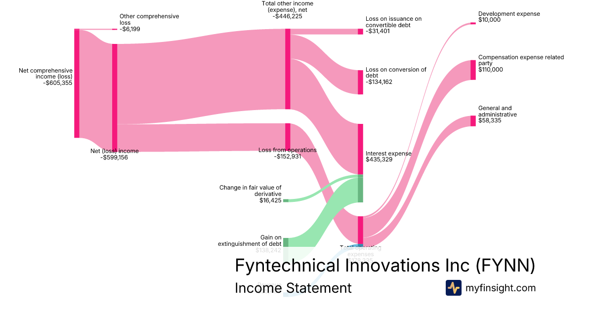 For the quarter ending 2025-09-30, FYNN made $25,404 in revenue. -$605,355 in net income. Net profit margin of -2382.91%.