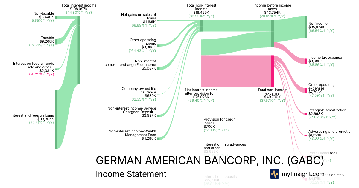For the quarter ending 2025-09-30, GABC made $208,598K in revenue. $35,074K in net income. Net profit margin of 16.81%.