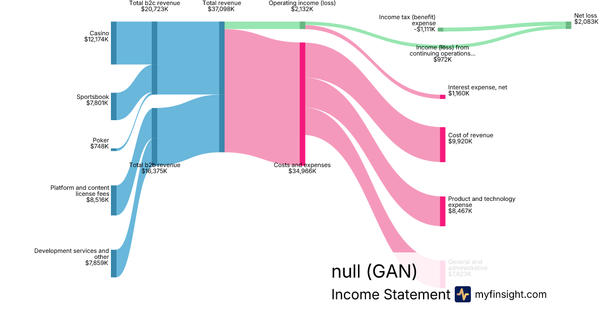 For the quarter ending 2024-09-30, GAN made $37,098K in revenue. $2,083K in net income. Net profit margin of 5.61%.