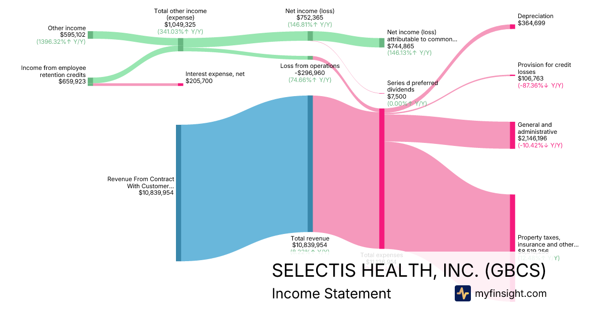 For the quarter ending 2025-09-30, GBCS made $10,839,954 in revenue. $744,865 in net income. Net profit margin of 6.87%.