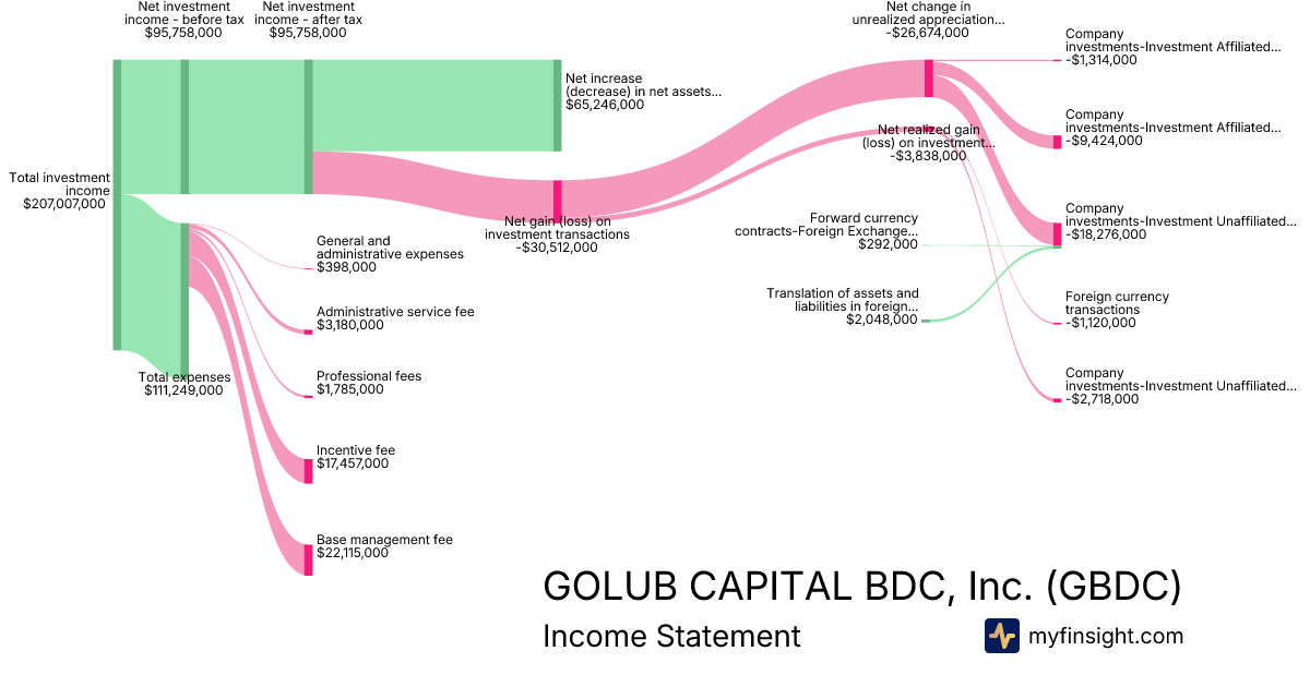 For the quarter ending 2025-12-31, GBDC made $320,596,000 in revenue. $65,246,000 in net income. Net profit margin of 20.35%.