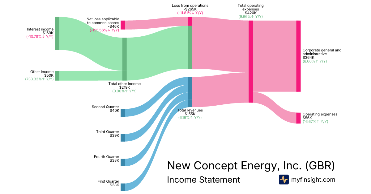 For the year ending 2025-12-31, GBR made $155K in revenue. -$46K in net income. Net profit margin of -29.68%.