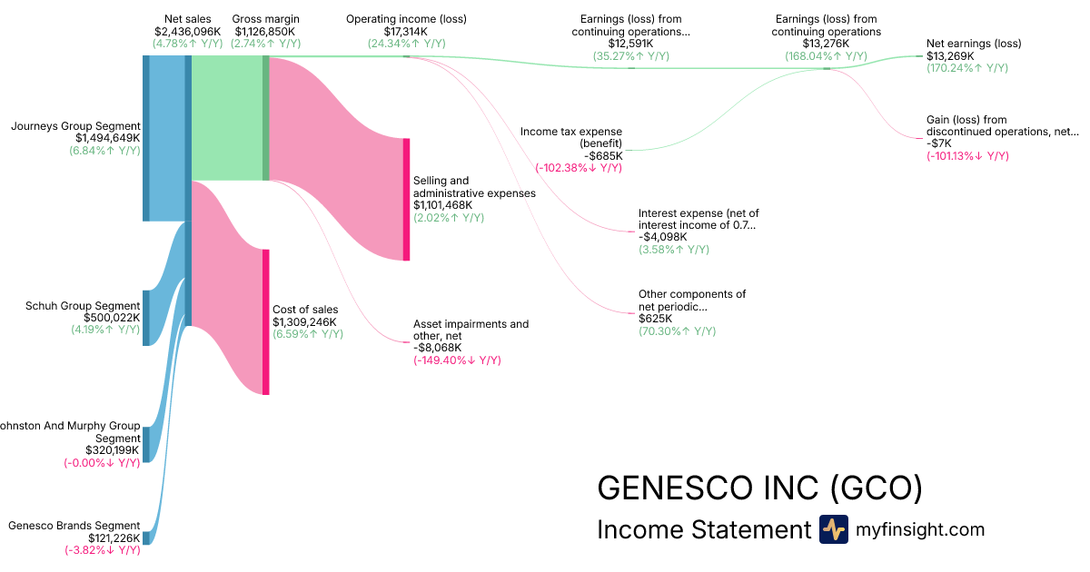 For the year ending 2026-01-31, GCO made $2,436,096K in revenue. $13,269K in net income. Net profit margin of 0.54%.
