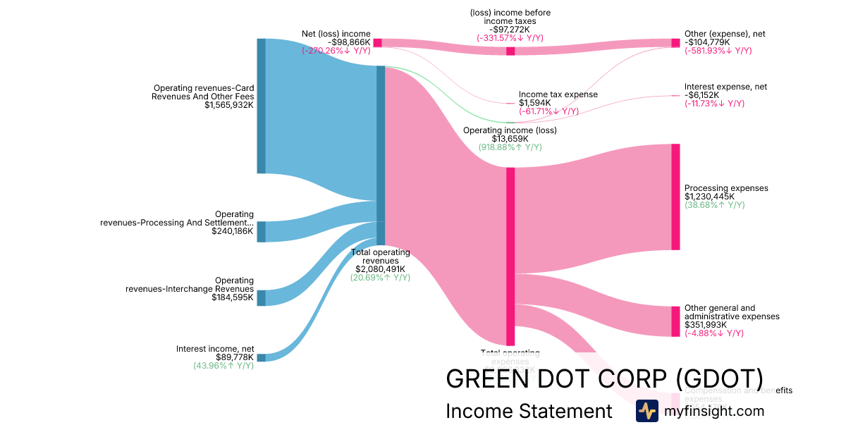 For the year ending 2025-12-31, GDOT made $2,080,491K in revenue. -$98,866K in net income. Net profit margin of -4.75%.