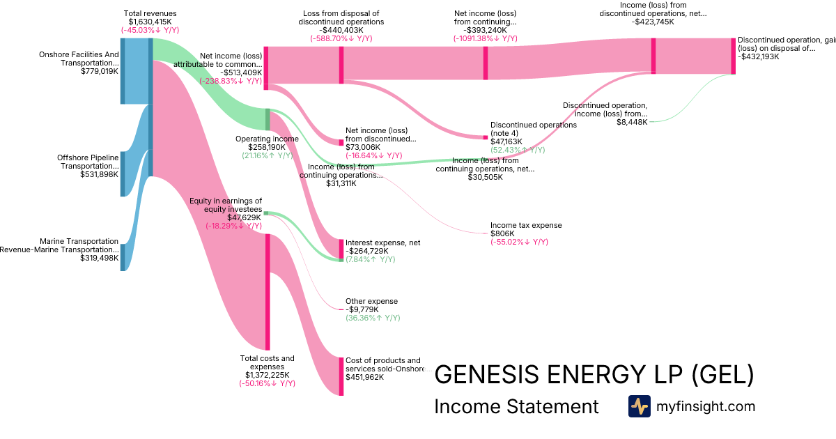 For the year ending 2025-12-31, GEL made $1,630,415K in revenue. -$513,409K in net income. Net profit margin of -31.49%.