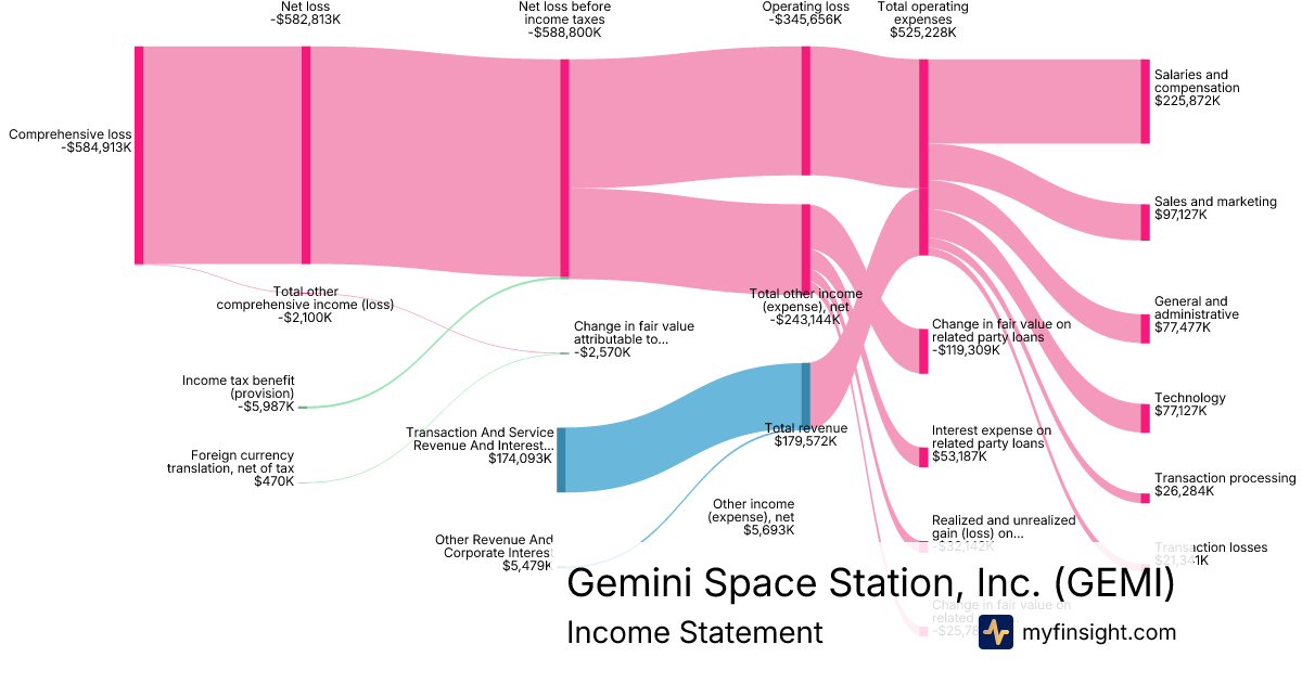 For the year ending 2025-12-31, GEMI made $179,572K in revenue. -$584,913K in net income. Net profit margin of -325.73%.