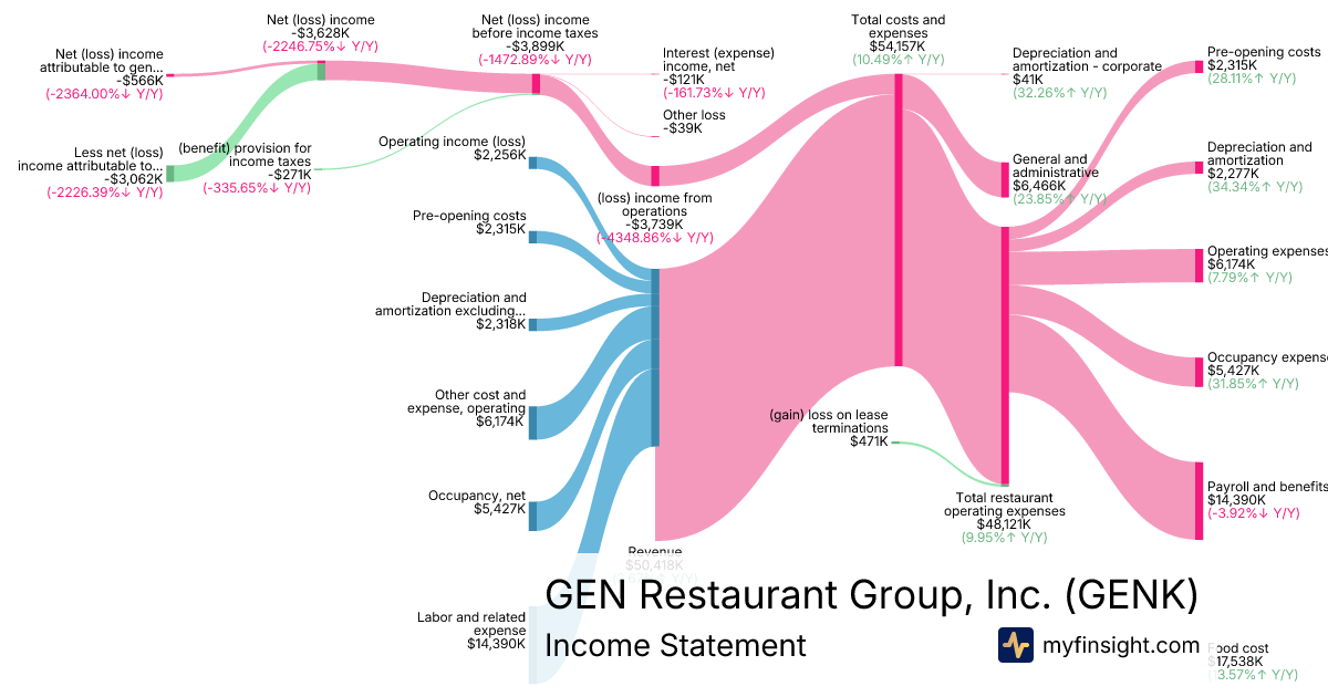 For the quarter ending 2025-09-30, GENK made $50,418,000 in revenue. -$566,000 in net income. Net profit margin of -1.12%.