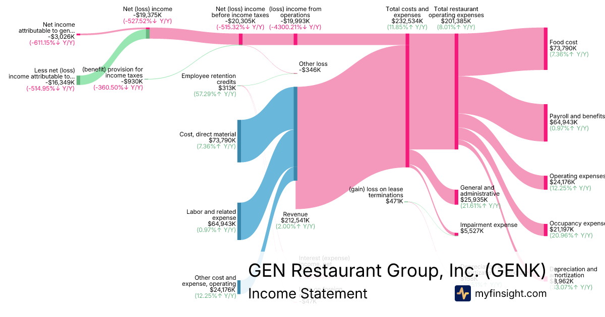 For the year ending 2025-12-31, GENK made $212,541K in revenue. -$3,026K in net income. Net profit margin of -1.42%.