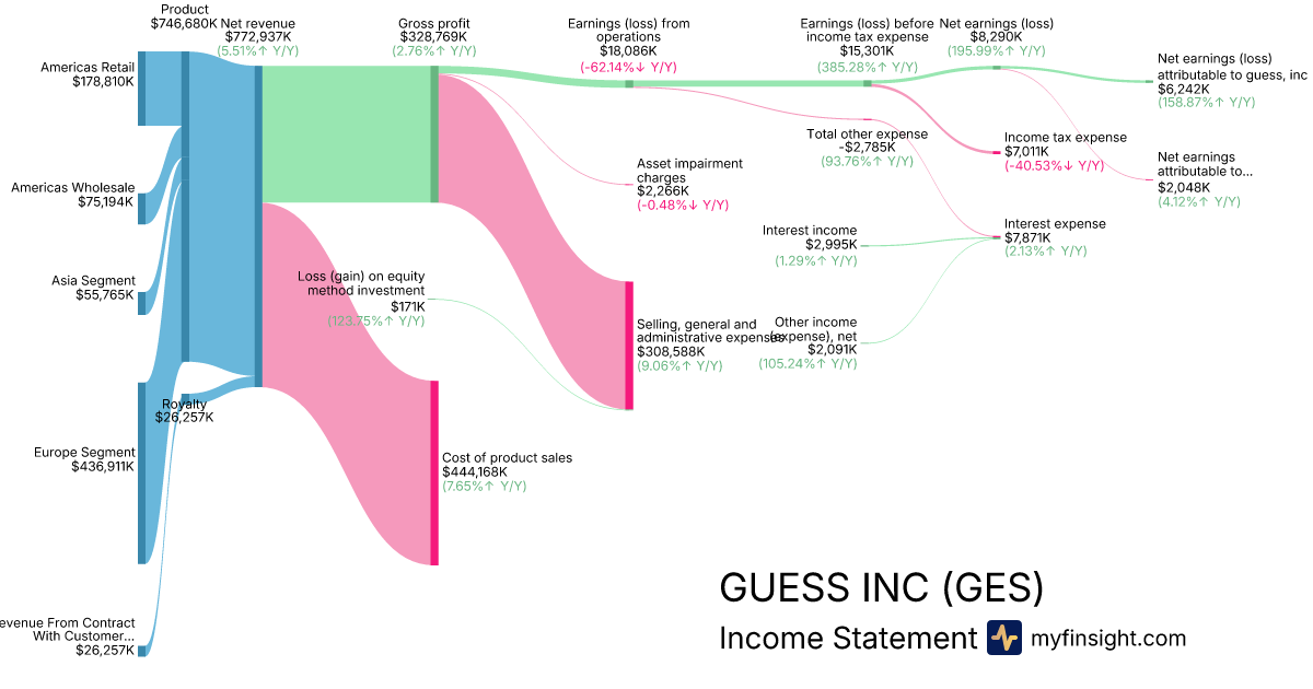 | Net earnings (loss) attributable to guess, inc | 6,242 | -32,928 | -23,395 | -10,603 |