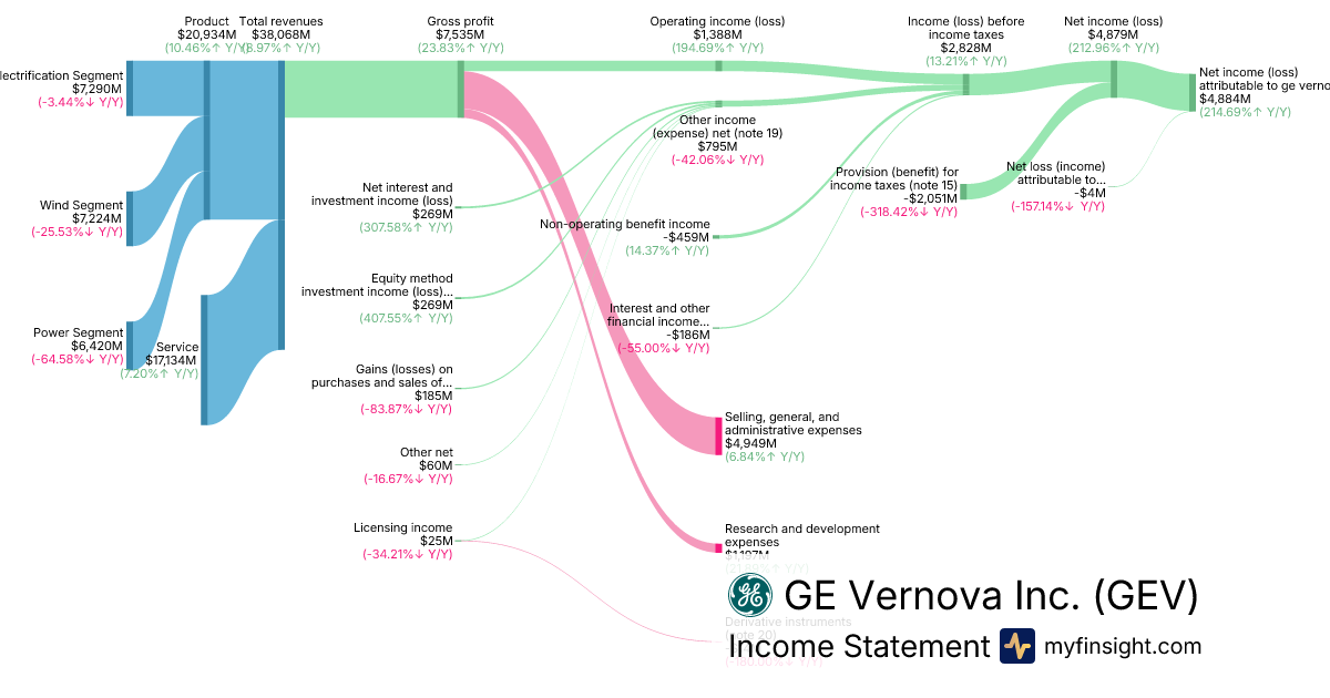 For the year ending 2025-12-31, GEV made $38,068M in revenue. $4,884M in net income. Net profit margin of 12.83%.