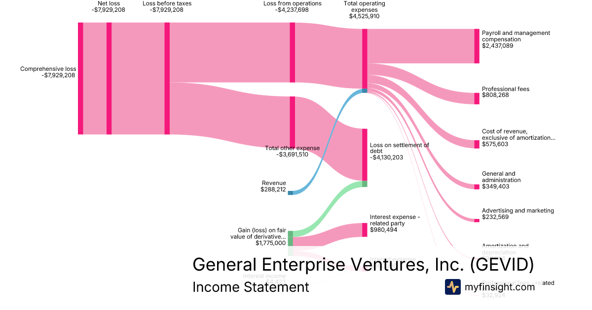 For the quarter ending 2025-09-30, GEVID made $288,212 in revenue. -$7,929,208 in net income. Net profit margin of -2751.17%.