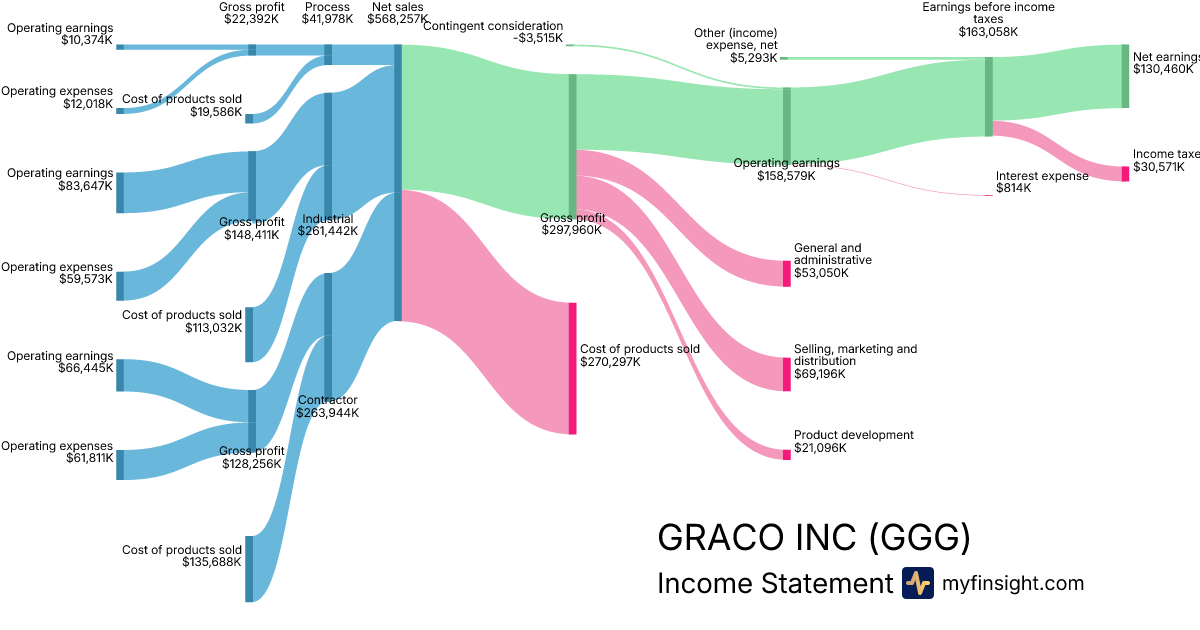 For the year ending 2025-12-26, GGG made $2,236,604K in revenue. $521,839K in net income. Net profit margin of 23.33%.
