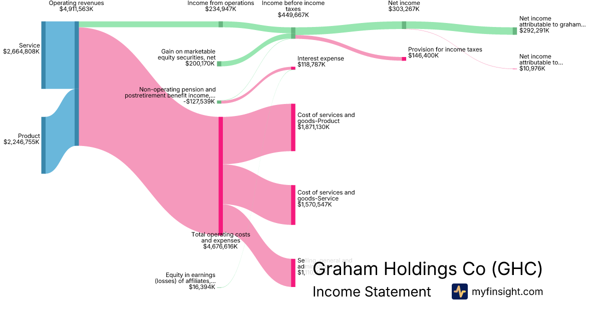 For the year ending 2025-12-31, GHC made $4,911,563K in revenue. $292,291K in net income. Net profit margin of 5.95%.