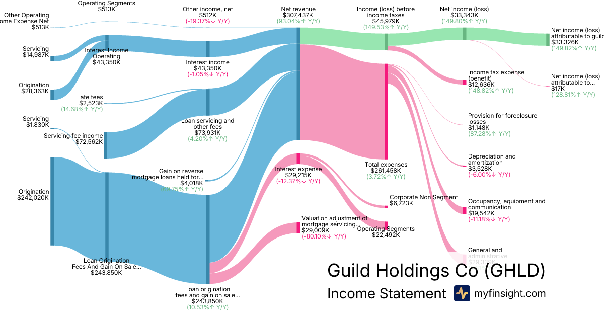 For the quarter ending 2025-09-30, GHLD made $307,437,000 in revenue. $33,326,000 in net income. Net profit margin of 10.84%.