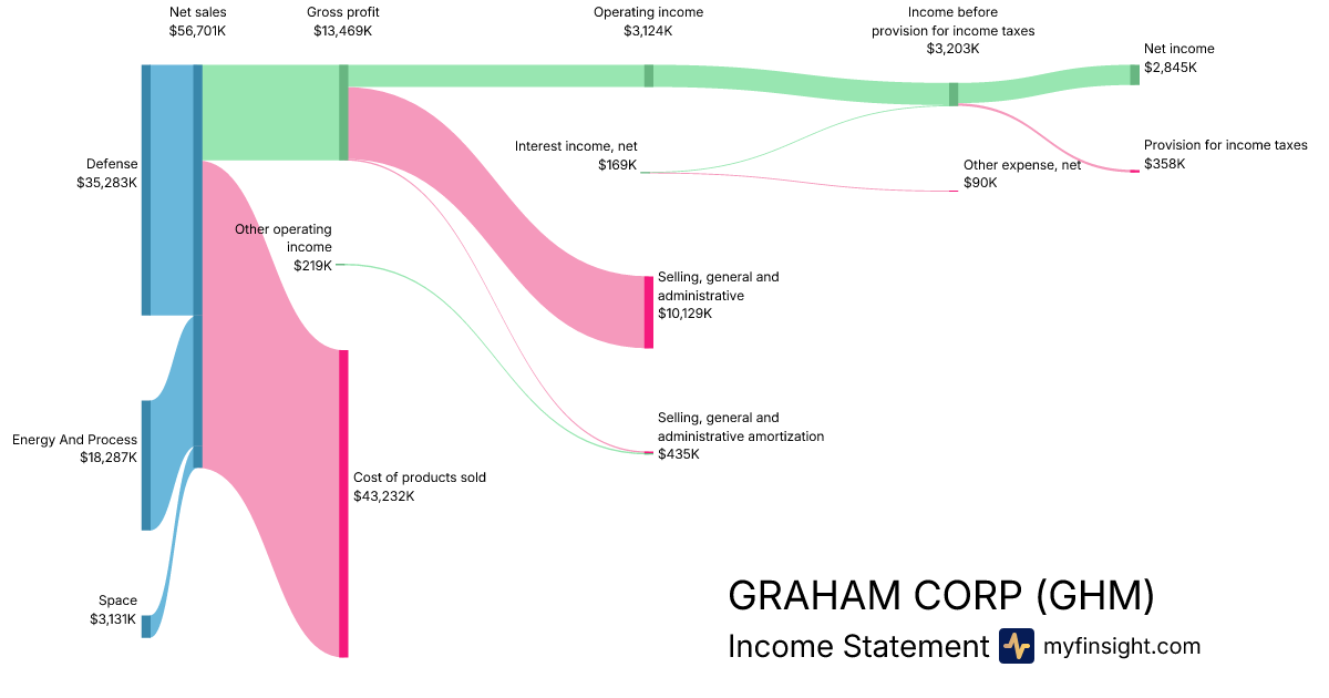 For the quarter ending 2025-12-31, GHM made $56,701K in revenue. $2,845K in net income. Net profit margin of 5.02%.