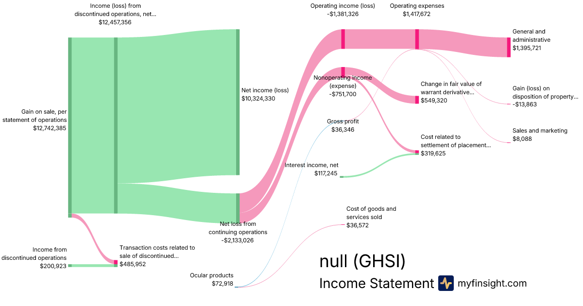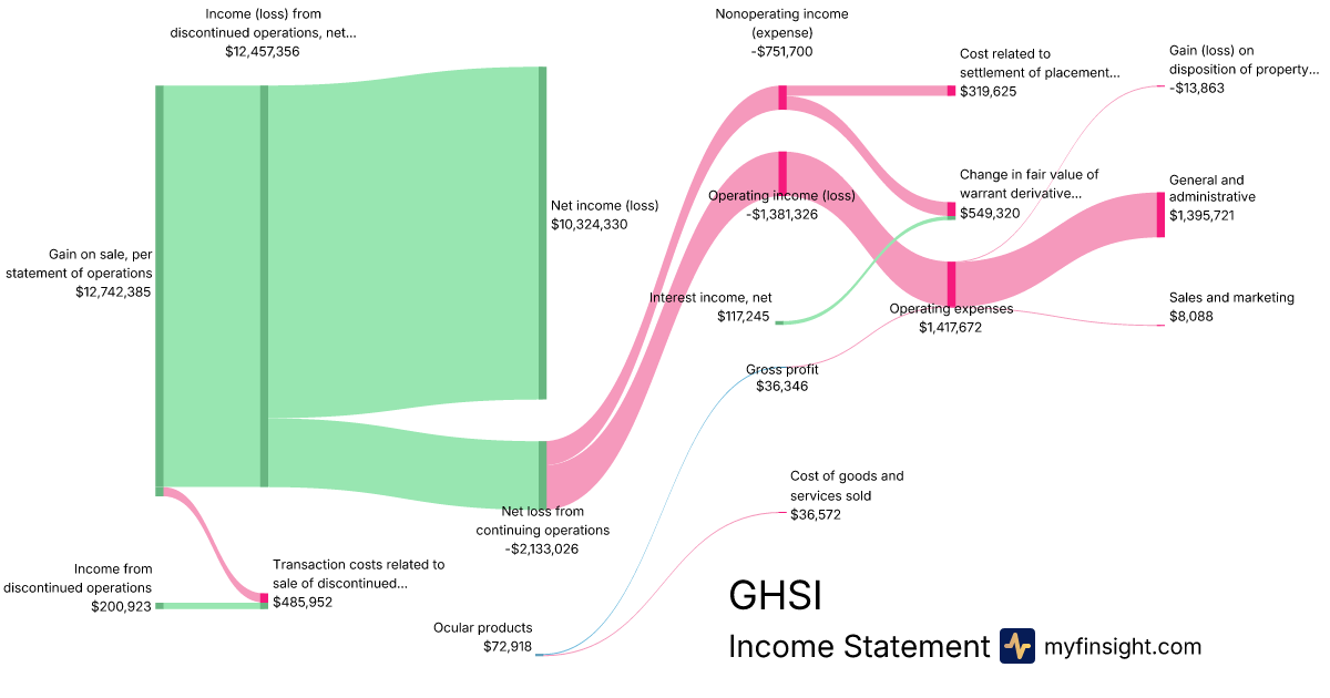 For the quarter ending 2024-06-30, GHSI made $72,918 in revenue. $10,324,330 in net income. Net profit margin of 14158.82%.