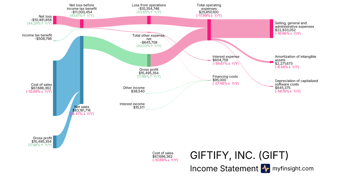 For the year ending 2025-12-31, GIFT made $83,181,716 in revenue. -$10,491,658 in net income. Net profit margin of -12.61%.