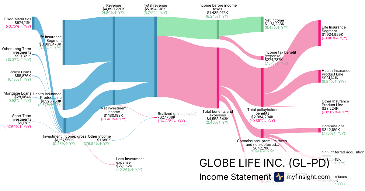 For the year ending 2025-12-31, GL-PD made $5,994,318K in revenue. $1,161,238K in net income. Net profit margin of 19.37%.