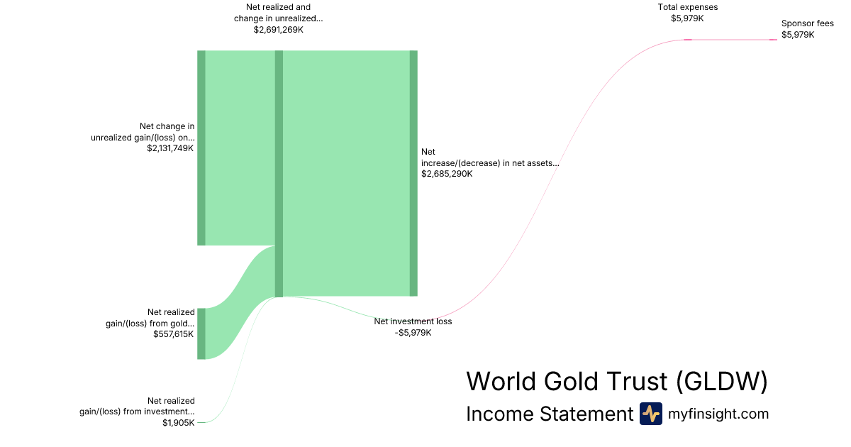 | Net realized and change in unrealized gain/(loss) on investment in gold | 2,691,269 | 1,330,570* | ||