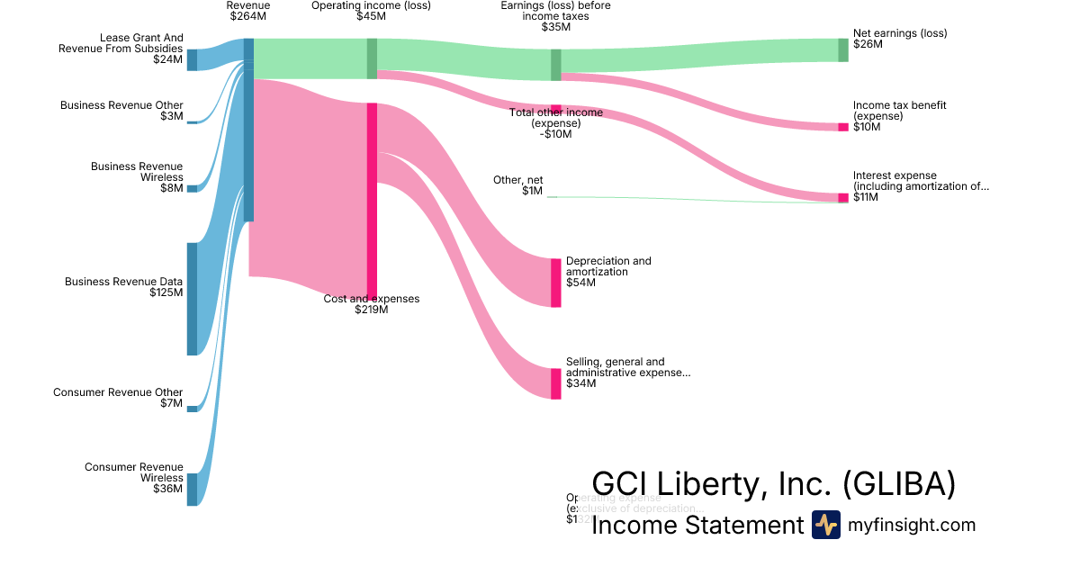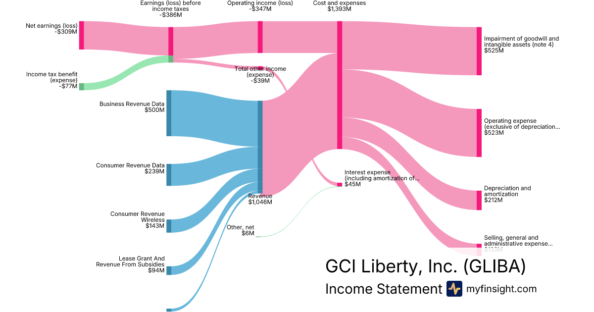 For the year ending 2025-12-31, GLIBA made $1,046M in revenue. -$309M in net income. Net profit margin of -29.54%.
