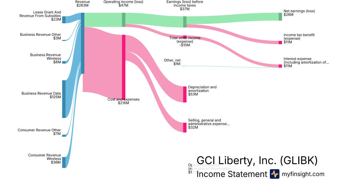 For the year ending 2025-12-31, GLIBK made $1,046M in revenue. -$309M in net income. Net profit margin of -29.54%.