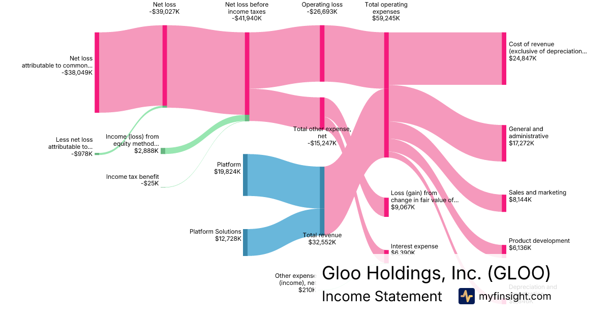 For the quarter ending 2025-10-31, GLOO made $32,552K in revenue. -$38,049K in net income. Net profit margin of -116.89%.