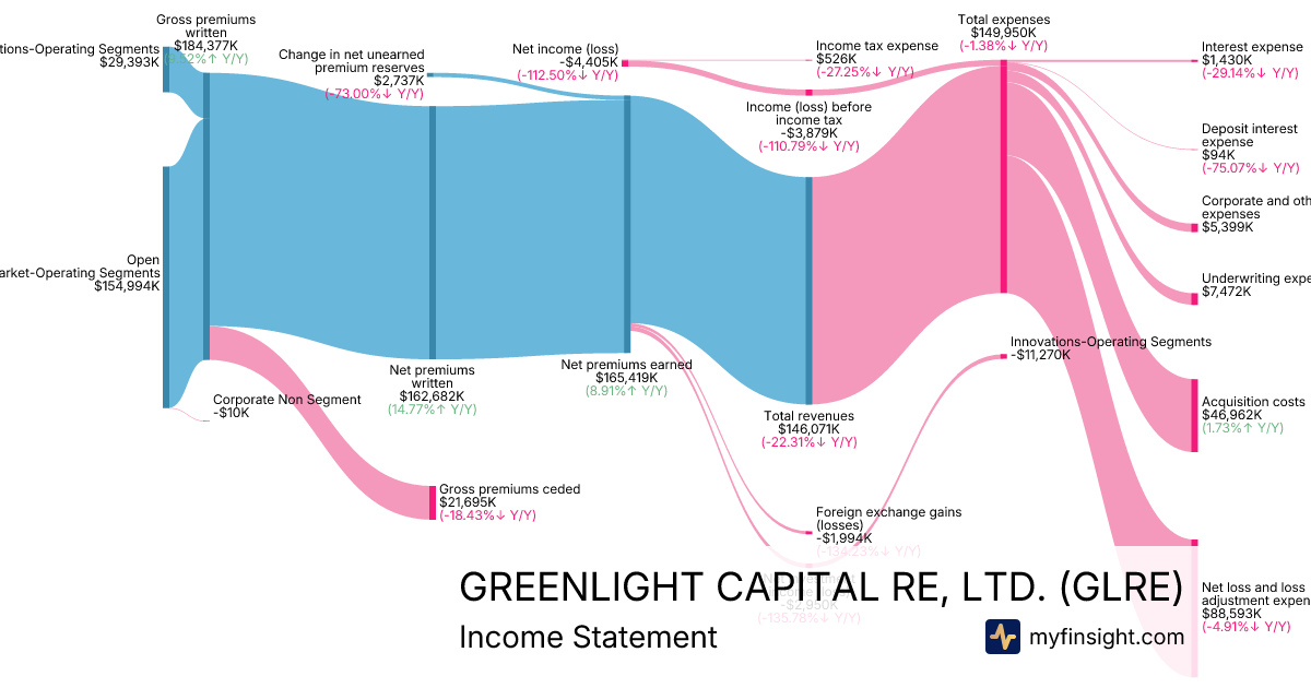 For the quarter ending 2025-09-30, GLRE made $146,071,000 in revenue. -$4,405,000 in net income. Net profit margin of -3.02%.