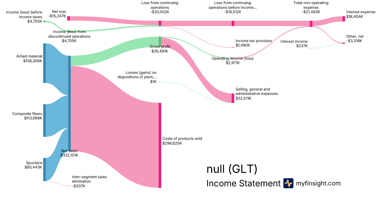 For the quarter ending 2024-09-30, GLT made $332,101K in revenue. -$15,247K in net income. Net profit margin of -4.59%.