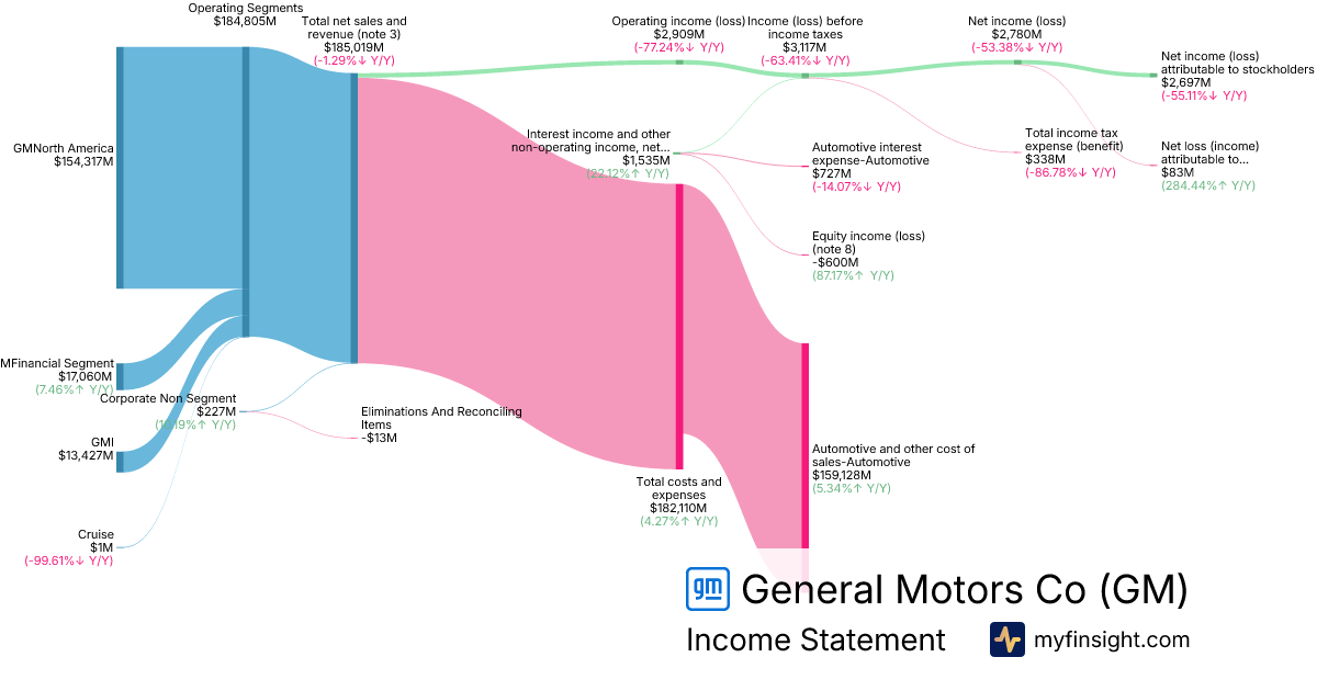 For the year ending 2025-12-31, GM made $185,019M in revenue. $2,697M in net income. Net profit margin of 1.46%.