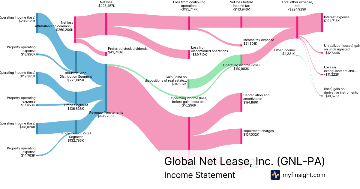 For the year ending 2025-12-31, GNL-PA made $495,286K in revenue. -$269,200K in net income. Net profit margin of -54.35%.