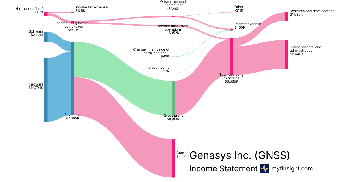 For the quarter ending 2025-12-31, GNSS made $17,065K in revenue. -$817K in net income. Net profit margin of -4.79%.