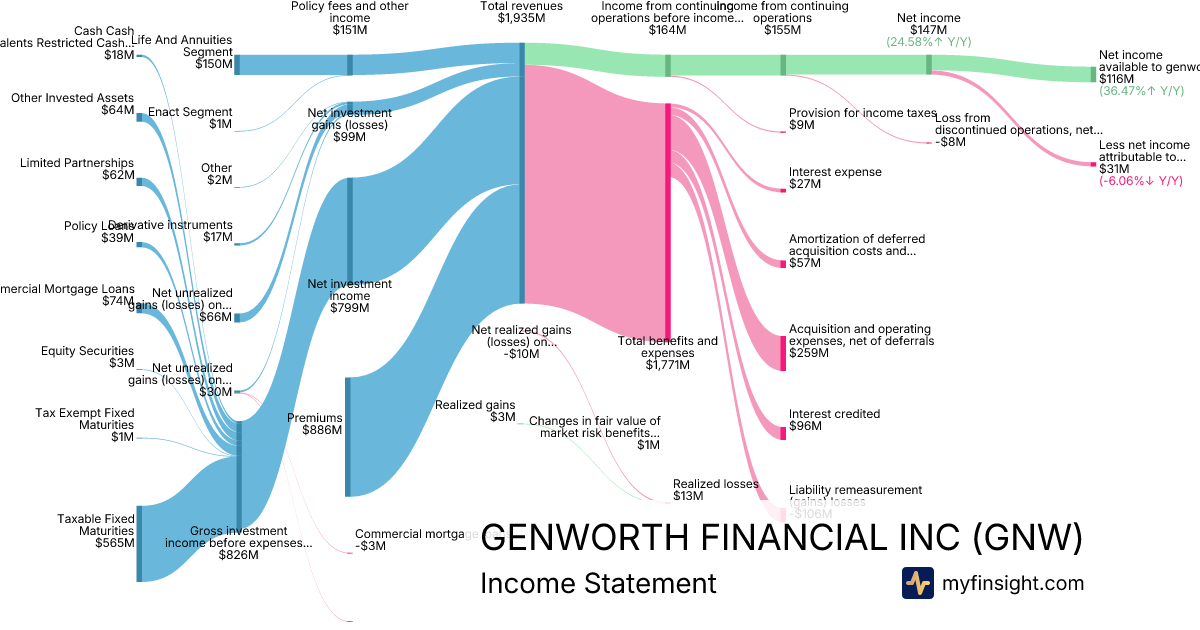 For the quarter ending 2025-09-30, GNW made $1,935M in revenue. $116M in net income. Net profit margin of 5.99%.