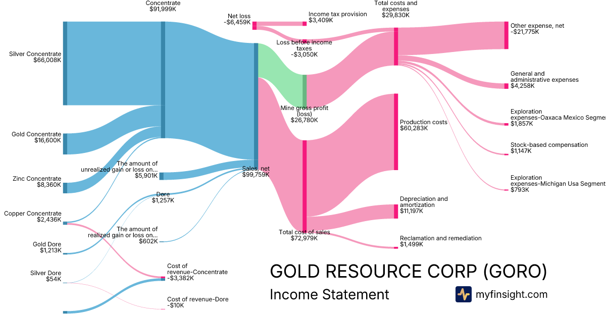 For the year ending 2025-12-31, GORO made $99,759K in revenue. -$6,459K in net income. Net profit margin of -6.47%.