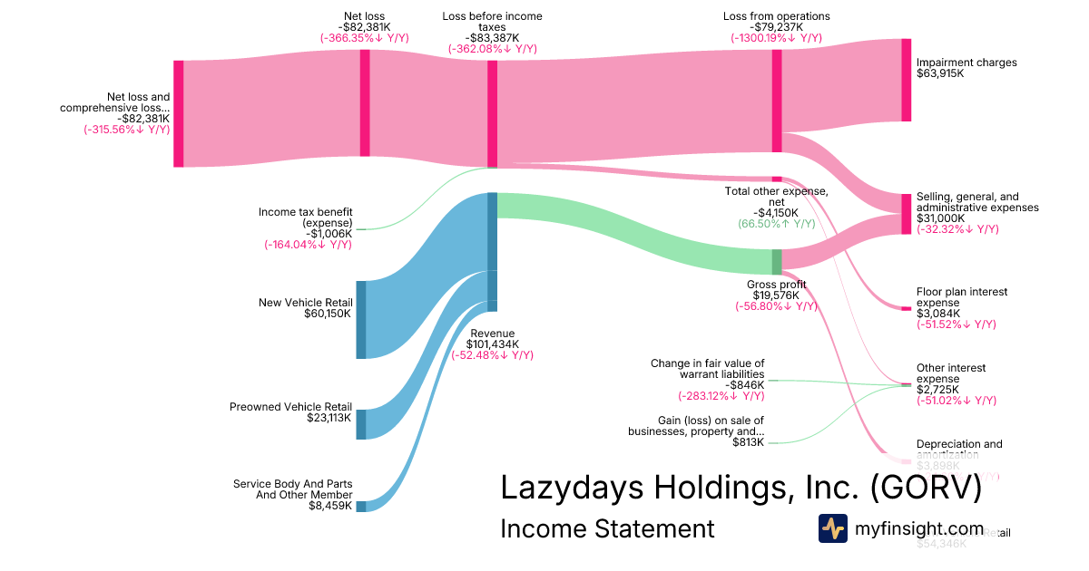 For the quarter ending 2025-09-30, GORV made $101,434K in revenue. -$82,381K in net income. Net profit margin of -81.22%.