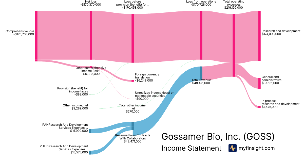 For the year ending 2025-12-31, GOSS made $48,471,000 in revenue. -$176,708,000 in net income. Net profit margin of -364.56%.