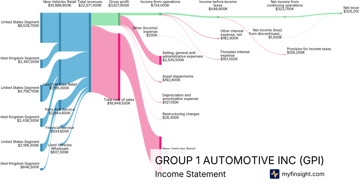 For the year ending 2025-12-31, GPI made $22,571,400K in revenue. $325,200K in net income. Net profit margin of 1.44%.