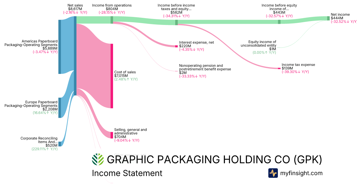 For the year ending 2025-12-31, GPK made $8,617M in revenue. $444M in net income. Net profit margin of 5.15%.