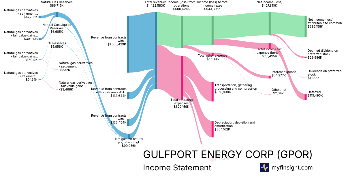 For the year ending 2025-12-31, GPOR made $1,422,583K in revenue. $396,158K in net income. Net profit margin of 27.85%.