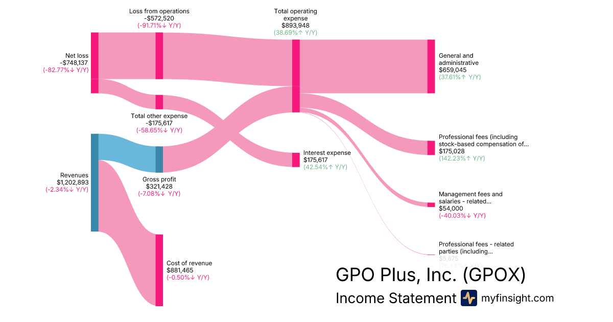 For the quarter ending 2026-01-31, GPOX made $1,202,893 in revenue. -$748,137 in net income. Net profit margin of -62.19%.