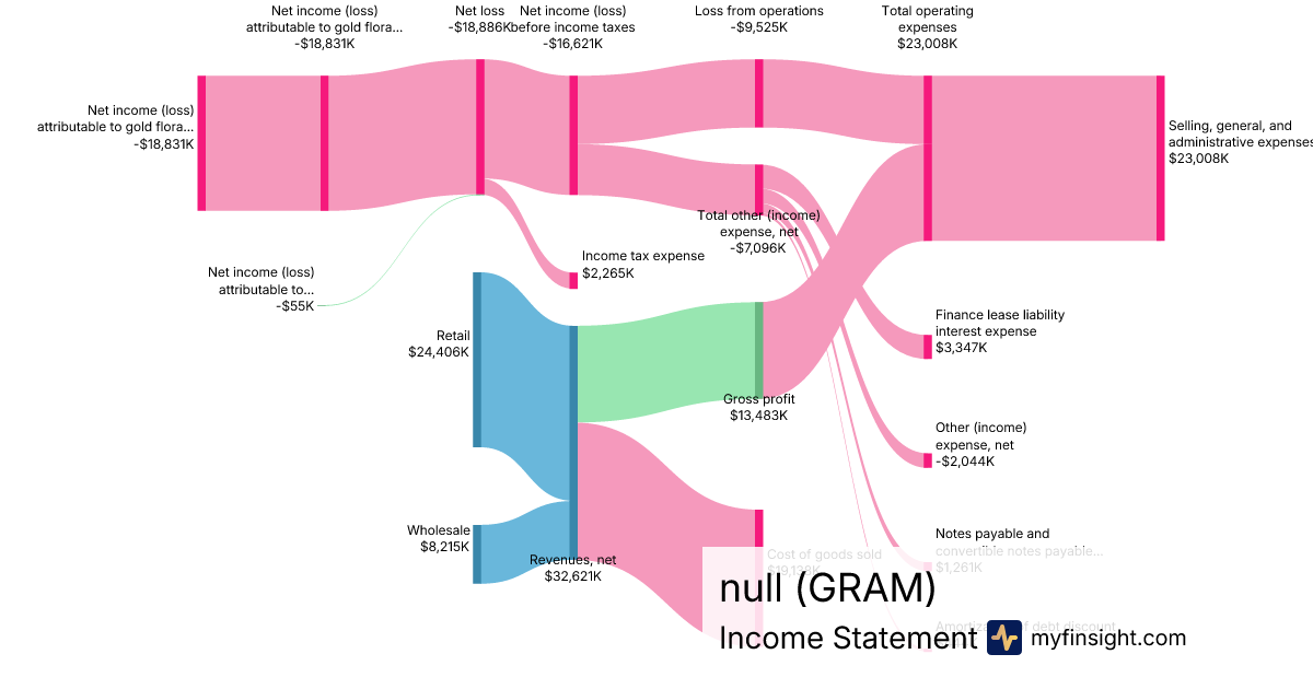 For the quarter ending 2024-09-30, GRAM made $32,621K in revenue. -$18,831K in net income. Net profit margin of -57.73%.