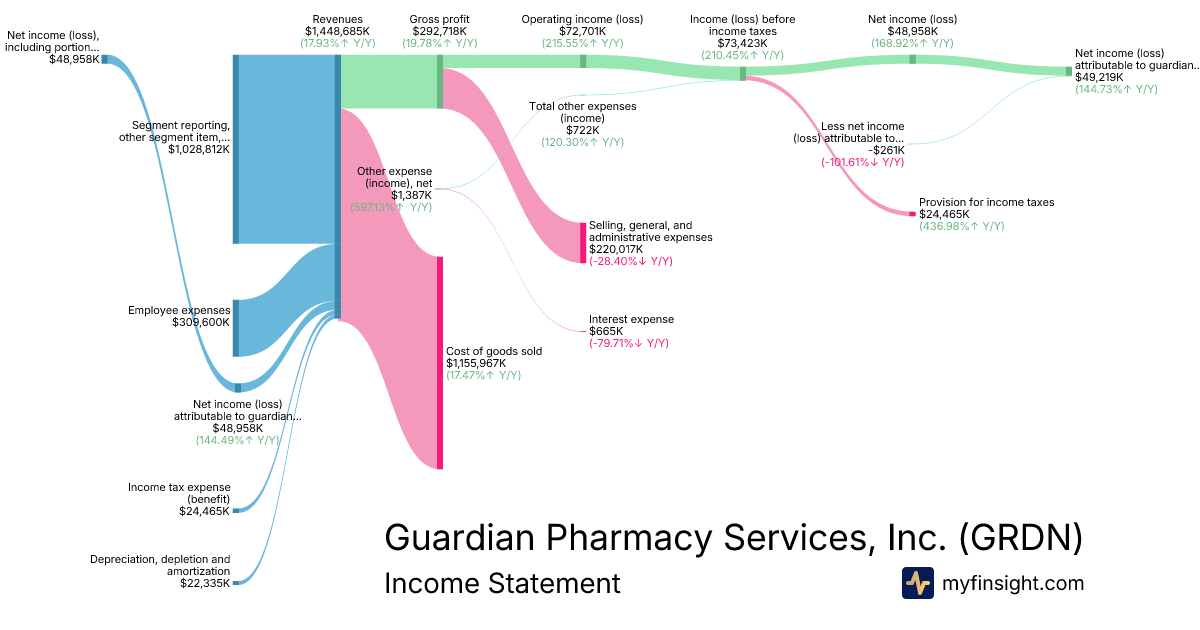 For the year ending 2025-12-31, GRDN made $1,448,685K in revenue. $49,219K in net income. Net profit margin of 3.40%.