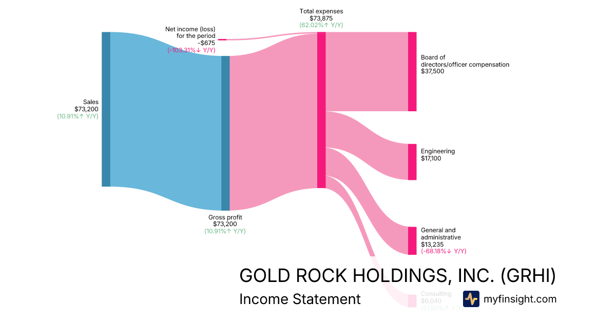 For the quarter ending 2025-09-30, GRHI made $73,200 in revenue. -$675 in net income. Net profit margin of -0.92%.
