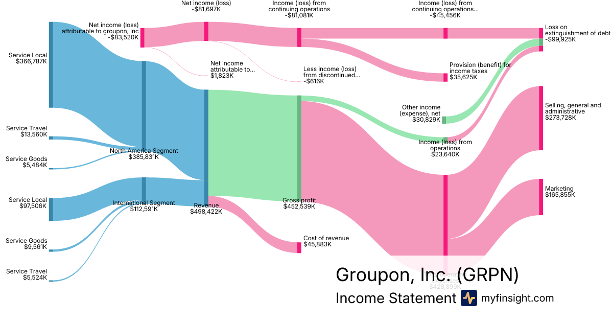For the year ending 2025-12-31, GRPN made $498,422K in revenue. -$83,520K in net income. Net profit margin of -16.76%.