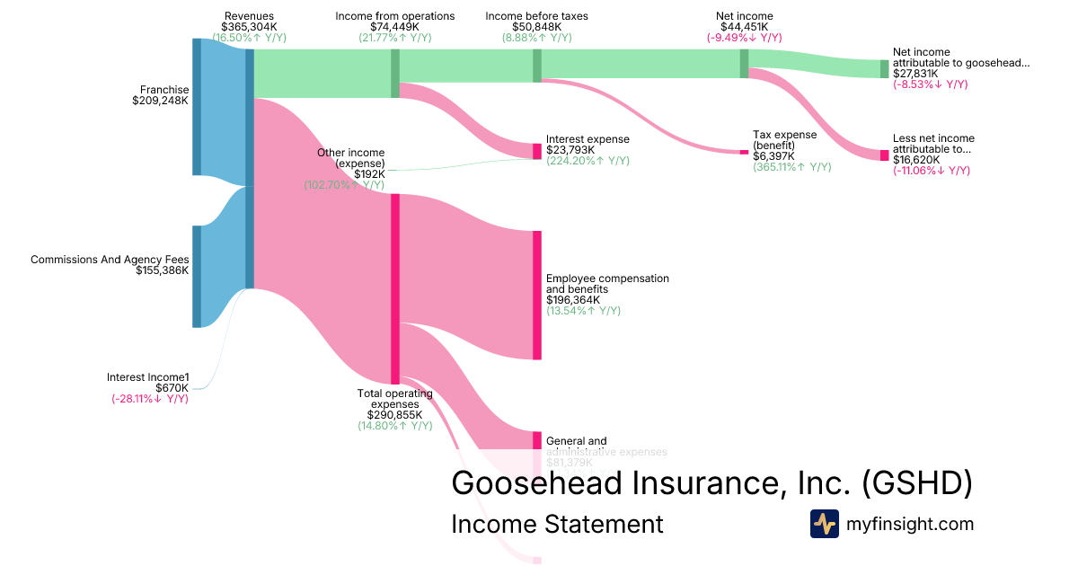 For the year ending 2025-12-31, GSHD made $365,304K in revenue. $27,831K in net income. Net profit margin of 7.62%.