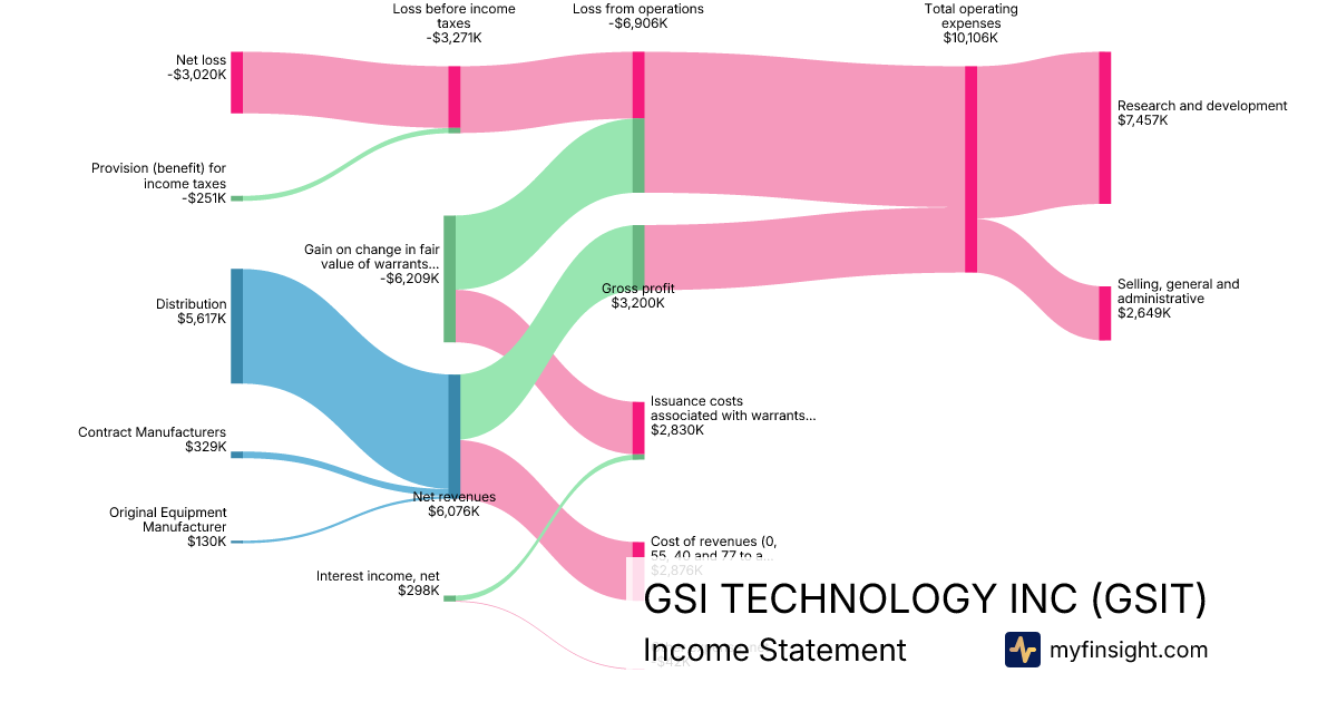 For the quarter ending 2025-12-31, GSIT made $6,076K in revenue. -$3,020K in net income. Net profit margin of -49.70%.